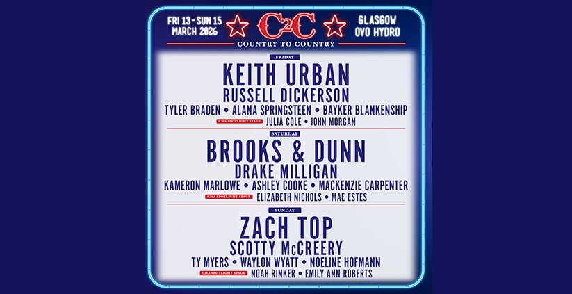 ZACH TOP - SCOTTY MCREERY - WAYLON WYATT - NOELINE HOFMANN - KEITH URBAN - RUSSELL DICKERSON - TYLER BRADEN - ALANA SPRINGSTEEN –BAYKER BLANKENSHIP - BROOKS & DUNN - DRAKE MILLIGAN - KAMERON MARLOWE - ASHLEY COOKE - MACKENZIE CARPENTER