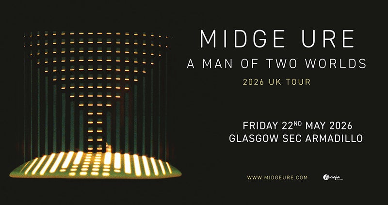 Acclaimed musician, producer, and Ultravox frontman Midge Ure brings his visionary A Man Of Two Worlds Tour to SEC Armadillo, Glasgow on 22 May 2026. This bold new live concept offers fans a rare and deeply personal concert experience. For the first time, Ure will seamlessly blend his iconic hits and fan favourites with the atmospheric instrumentals that have long featured on his solo albums — many of which have never been performed live. The result is a rich, immersive show designed to take the audience on an emotional journey, both visually and sonically. From his early days with Slik and The Rich Kids, to defining the sound of the '80s with Ultravox and co-creating the global charity single Do They Know It’s Christmas?, Midge Ure has always challenged musical expectations. With Ivor Novello, Grammy and BASCAP awards to his name, he continues to push boundaries with this ambitious new show. Don’t miss the chance to experience a truly unique evening of music that bridges decades of creativity — a live set not just performed, but curated, woven together into one unforgettable narrative.
