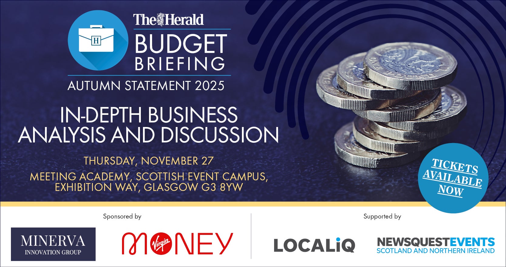 The Herald will host their post Budget Briefing on the morning of Thursday, 27 November 2025, offering insight and analysis of the Budget. Delegates will hear from a panel of experts, including The Herald’s political columnist Brian Taylor, and discuss how the Budget will affect businesses moving into 2026.
